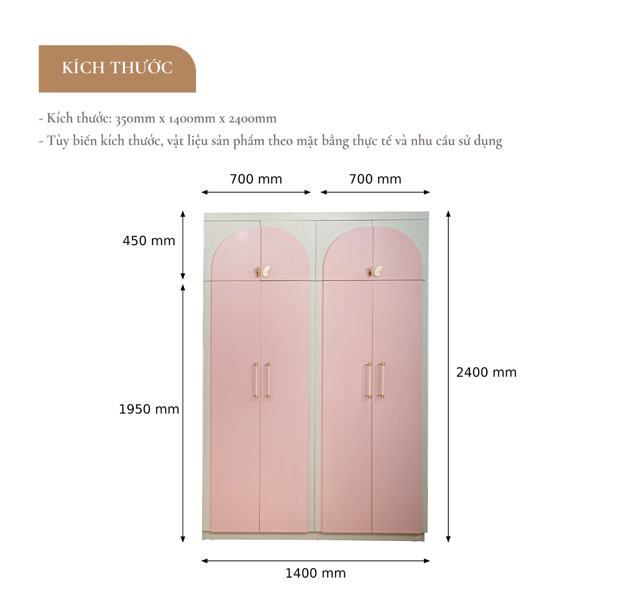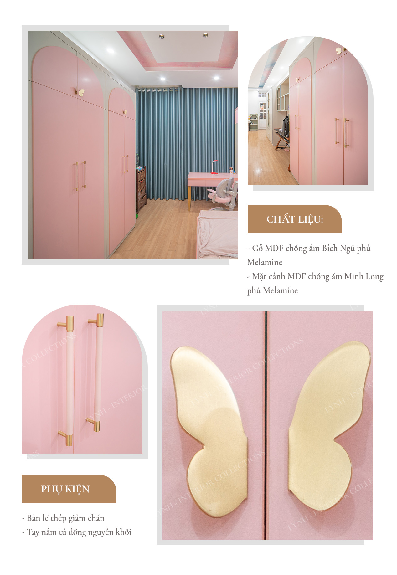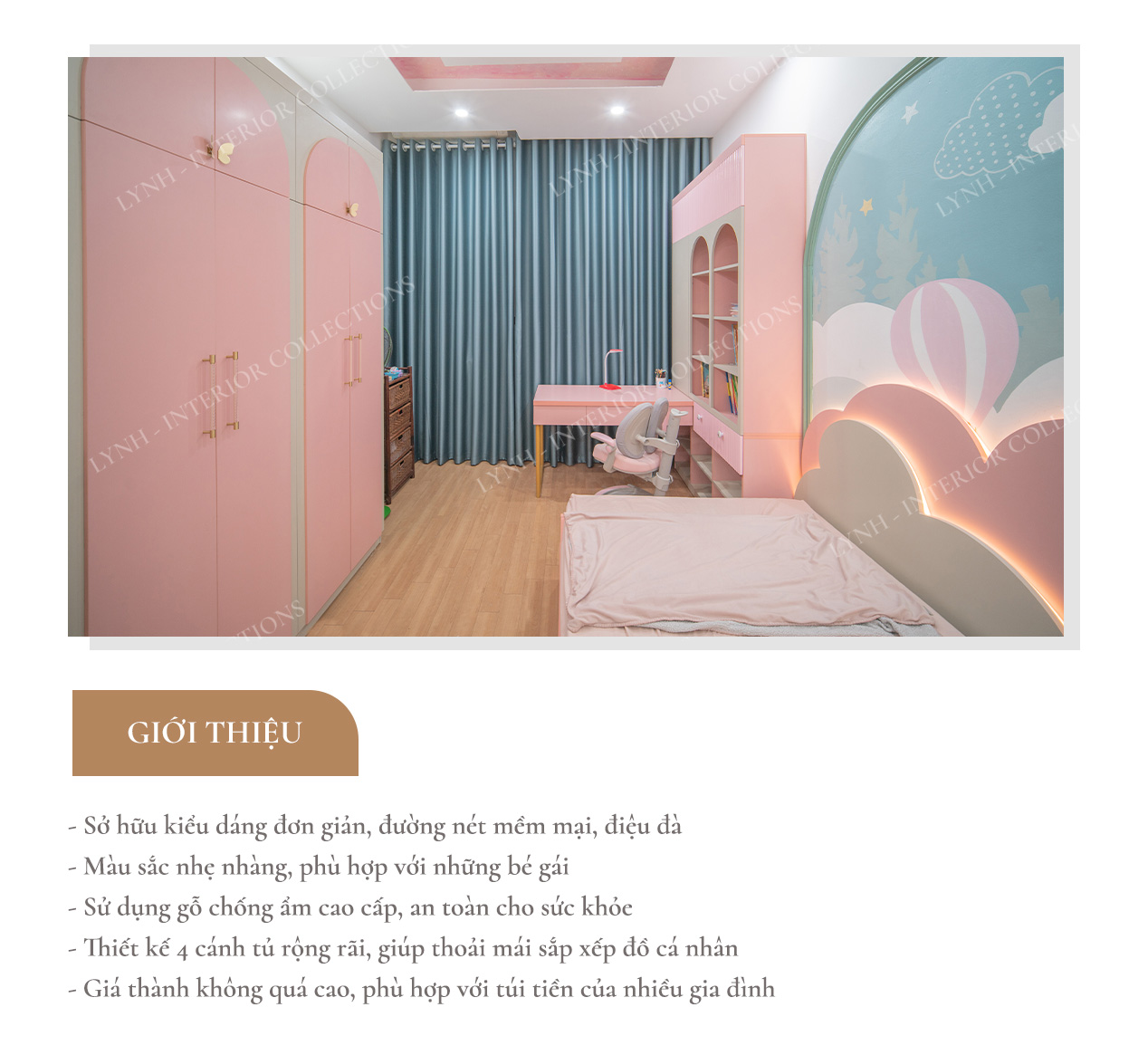 Nếu bạn đang tìm kiếm một mẫu tủ quần áo trẻ em bằng gỗ thì chắc chắn không nên bỏ qua mẫu tủ quần áo bé gái tại Lynh. Với sắc hồng trong trẻo, tinh tế và điệu đà, chắc chắn mẫu tủ này sẽ mang đến cho không gian phòng ngủ hoàn hảo. Điểm mạnh của sản phẩm này chính là vô cùng an toàn cho trẻ nhỏ bởi được làm từ gỗ MDF cao cấp.