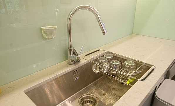 Chậu rửa âm mặt đá - một món thiết bị bếp nhỏ nhưng lại “có võ”. Không gian trong các căn hộ dịch vụ sẽ trở nên đẹp mắt và hiện đại hơn rất nhiều chỉ nhờ chi tiết này.