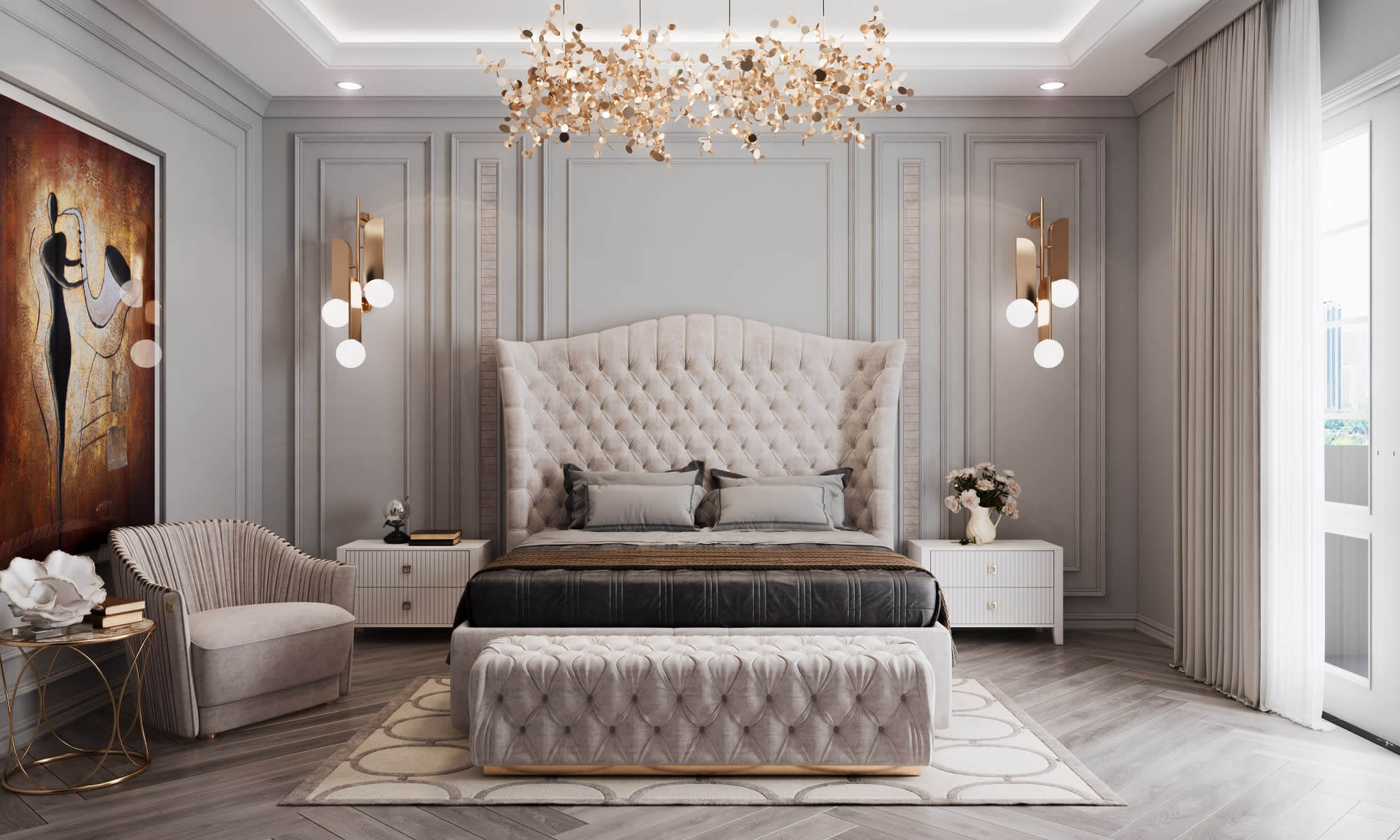 Thiết kế nội thất phòng ngủ theo phong cách tân cổ điển